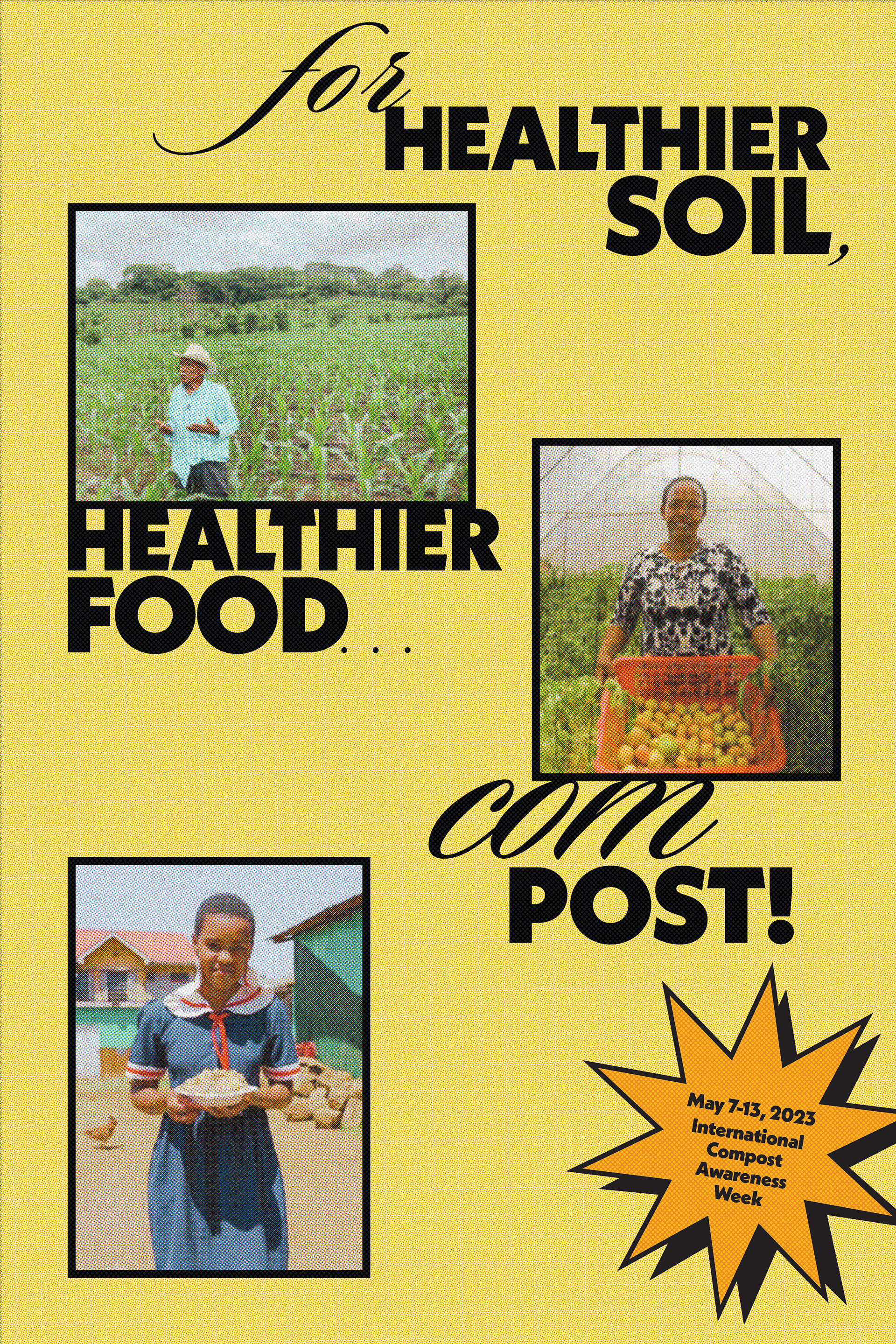This was a poster created for the international compost awareness week competition. I used images my dad took from his trip to Honduras, because this year’s competition had a focus on world poverty. I wanted this to feel like a vintage magazine piece, so i achieved this with the choice of color, typeface, and texture.